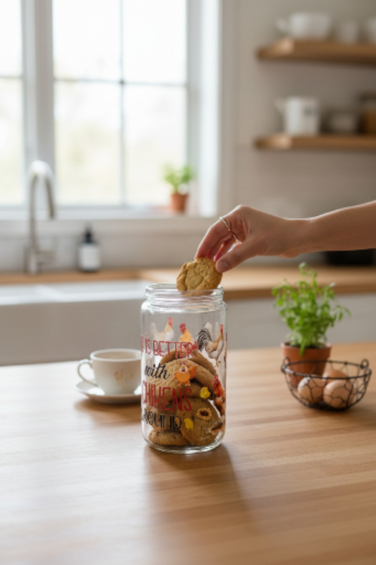 Chicken Glass Tumbler with Lid & Reusable Straw