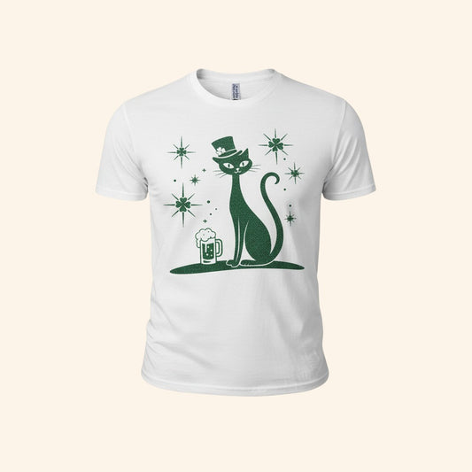 St. Patrick's Day Cat T-Shirt, Green Lucky Tee, Irish Beer Shirt