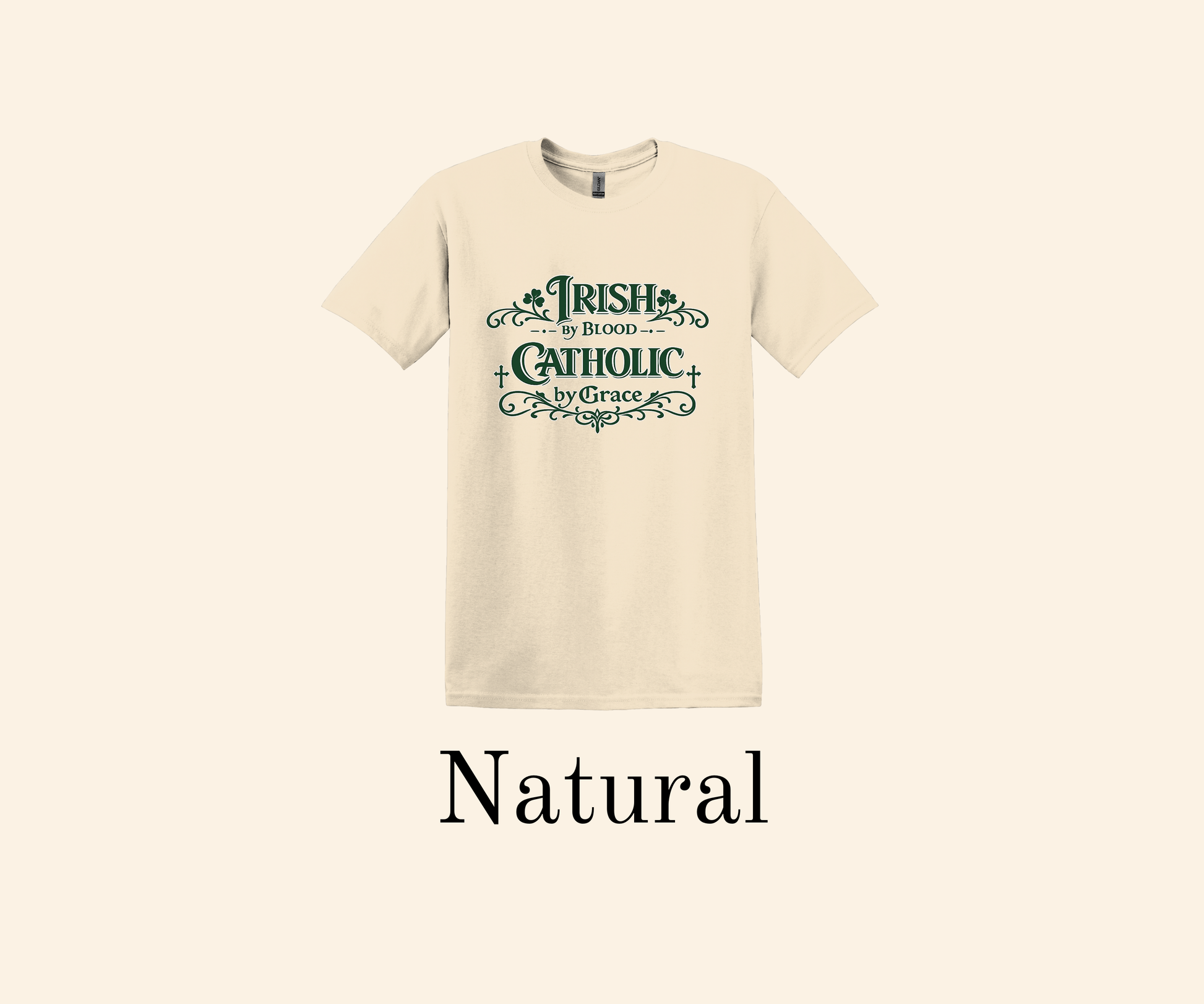Show off your roots and your faith with this “Irish by Blood; Catholic by Grace” design—classic, bold, and easy to wear year-round. Perfect for St. Patrick’s Day celebrations, Irish family gatherings, church events, or as a meaningful gift for the Irish Catholic in your life.